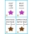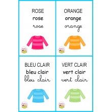 Les fiches sont au format 4 sur une A4 et les couleurs sont représentées soit par des étoiles, soit par une blouse.