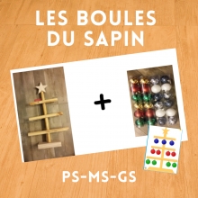 Ce pack contient des fiches à utiliser avec un sapin en bois et des crochets pour les boules ou avec le modèle papier fourni.