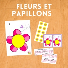 => l’enfant choisi parmi les étiquettes ( 3 représentations possibles) et place le nombre de papillons indiqués.