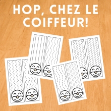Comment ça marche ? Chaque enfant reçoit une fiche avec une tête de clown aux cheveux longs. Sur chaque mèche de cheveux, un tracé graphique spécifique est dessiné (lignes droites, courbes, zig-zags ou vagues).