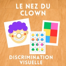 L'atelier peut se jouer seul, l'enfant va retrouver les couleurs des nez selon les étiquettes.