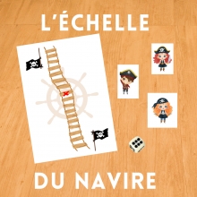 Le premier avance le pion du nombre de cases (ici des marches d'échelle) indiqué par le dé.